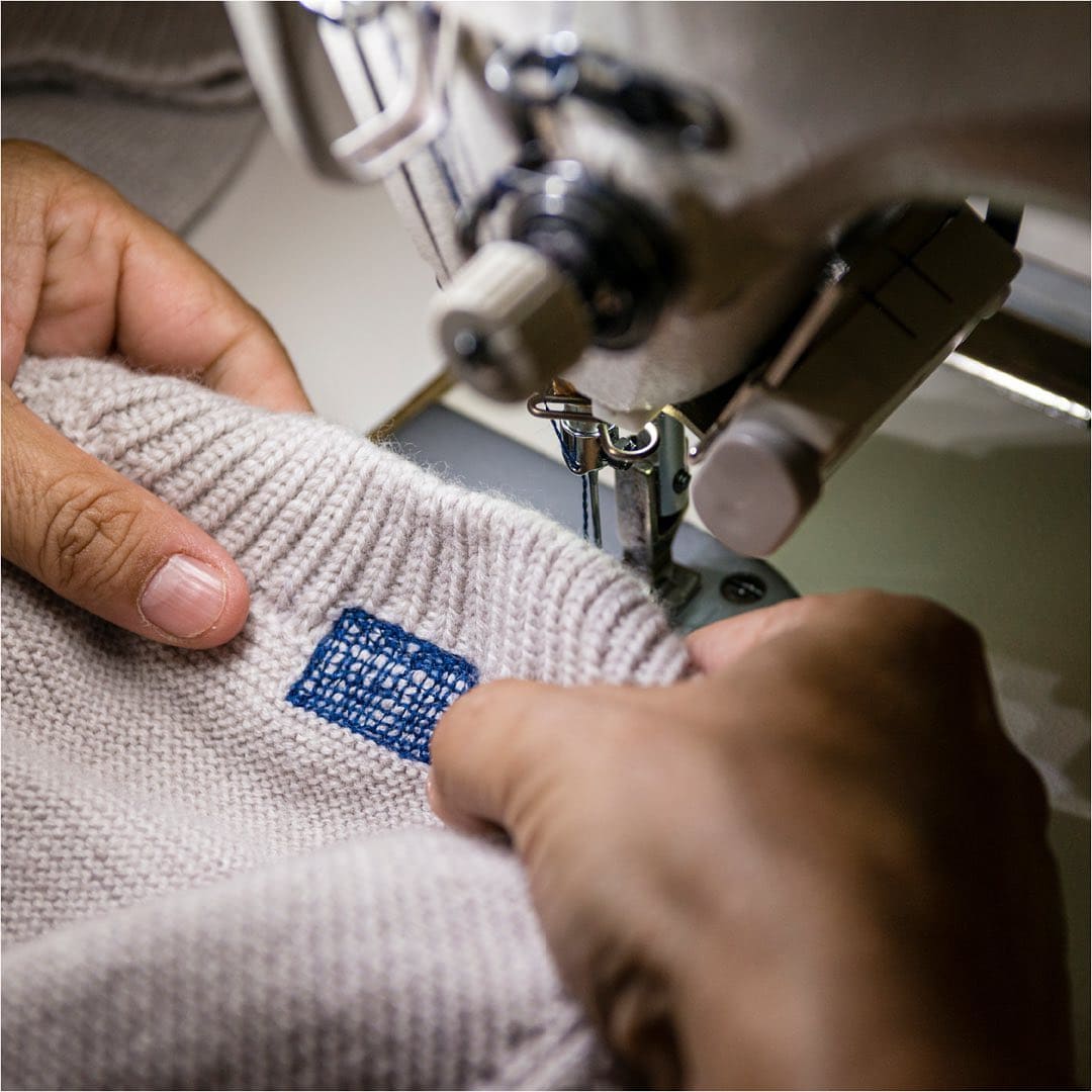 技術面では、13.56MHzの電波を利用した非接触通信技術である近距離無線通信(NFC)により、すべての生産工程が追跡できるようになりました。 NFC は、商品認証や小売ブランドに対する顧客との関わりに有効なツールとして広く採用されています。 NFCタグをアイテムに装着することで、デジタルワールドとの接続が可能になります。 シープ・インクのニットウェアには、1日目からNFCタグが裾に付いており、常にブランドの一部となっています。 英国のNFCタグ専門サプライヤーであるSeritag社は、NFC対応携帯電話をタップすることで情報を開くことができる独自のURLを付与したタグに対するコード化サービスを提供しています。 これによりお客様は、羊毛がどの農場で生産され、羊毛を供給する羊の健康状態がどうなっているかなど、生産工程を詳細に把握することができます。 衣服の着用者は、羊の毛を刈るタイミングや、羊がどこにいるのかをプッシュ通知で知ることもできます。 シープ・インクのお客様との関わり方は、お客様に衣服のライフサイクルを考えることを促し、ファッション業界に持続可能という考えを具体的に持ち込みます。